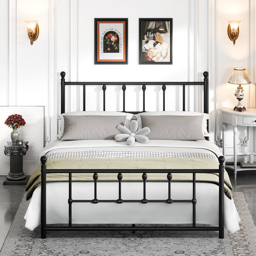 LEVELEVE 14 Inch Full Size Victorian Vintage Metal Platform Bed Frame with Headboard and Footboard, Underbed Storage, No Box Spring Needed, Easy Assembly, Black